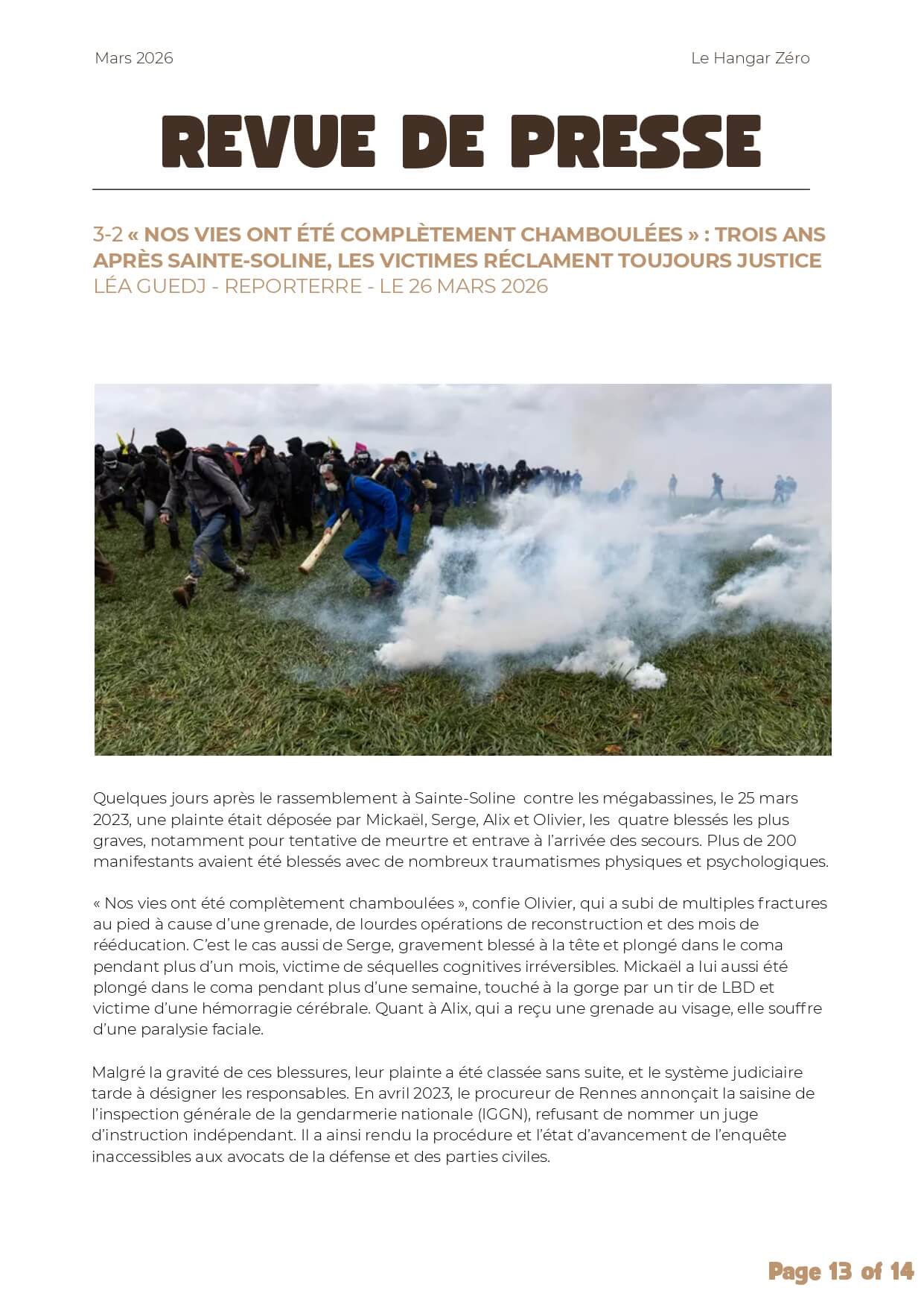 En parallèle, les mobilisations écologiques continuent de marquer l’actualité, comme en témoigne le suivi des événements de Sainte-Soline, rappelant les tensions fortes autour des luttes environnementales.
